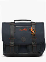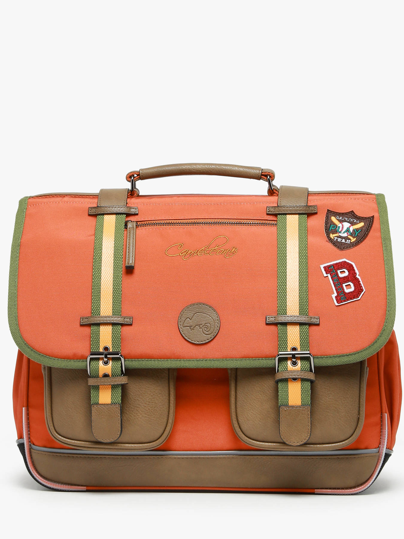 41 cm - 24 liter - 1.33 kg ~ Deze schooltas uit de Vintage collectie van het merk Caméléon heeft een breedte van 41 cm. Ideaal voor vanaf het 4de leerjaar! Dit model heeft een duidelijke vintage look, dankzij twee voorvakjes en de riempjes met gespen. De schooltas beschikt over drie ruime compartimenten, die schriften (24x32 cm), mappen en schoolboeken van A4 formaat kunnen bevatten. Onder de overslagflap bevindt zich ook een uniek opbergvakje, voorzien van een gratis liniaal. De twee kleine ritsvakjes vooraan zijn perfect om een snack of andere kleine spulletjes in te stoppen. Dit model beschikt ook over een naamlabel aan de achterzijde, en kan makkelijk gesloten worden dankzij een dubbel kliksysteem. Voor optimaal comfort zijn de rugzijde en schouderbanden extra gewatteerd. Dankzij enkele reflectoren kan uw kind zich ook veilig in het verkeer begeven. Vintage op z'n mooist!