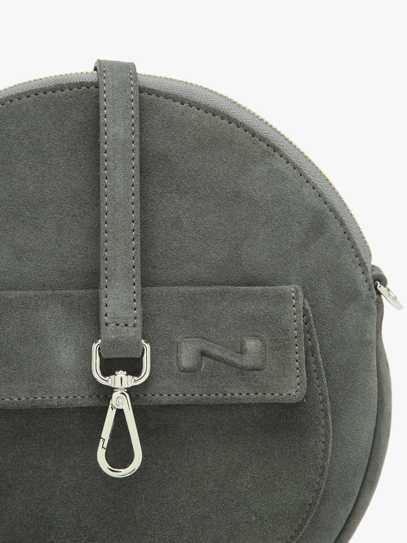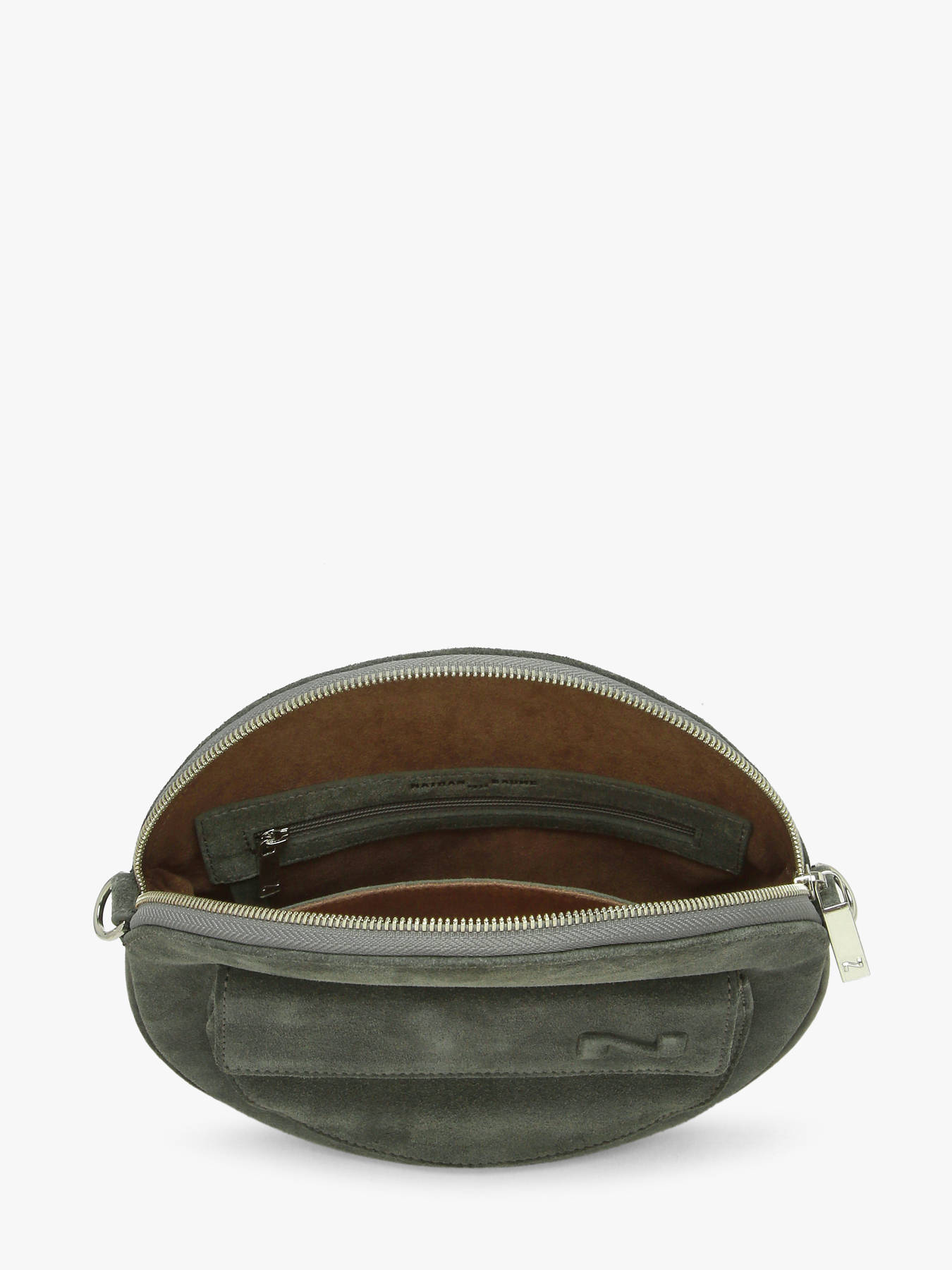Deze charmante Dorine crossbody tas is een nieuw model van het merk Nathan Baume. Het ronde tasje is afgewerkt met een elegant opbergvak aan de voorzijde, waardoor de tas een extra dimensie krijgt. Het iconische N-logo van Nathan Baume werd aan de voorzijde in het leder gedrukt. De tas is gemaakt van kwaliteitsvol suède leer: zacht en zeer aangenaam in aanraking! Dit ronde accessoire sluit met rits, en beschikt over een praktisch ingedeeld interieur met een handig rits- en steekvakje. Zo kunt u uw spulletjes overzichtelijk en veilig opbergen. De suède schouderriem is verstelbaar met behulp van een rond gespje, en kan gekruist of lang over de schouder gedragen worden.