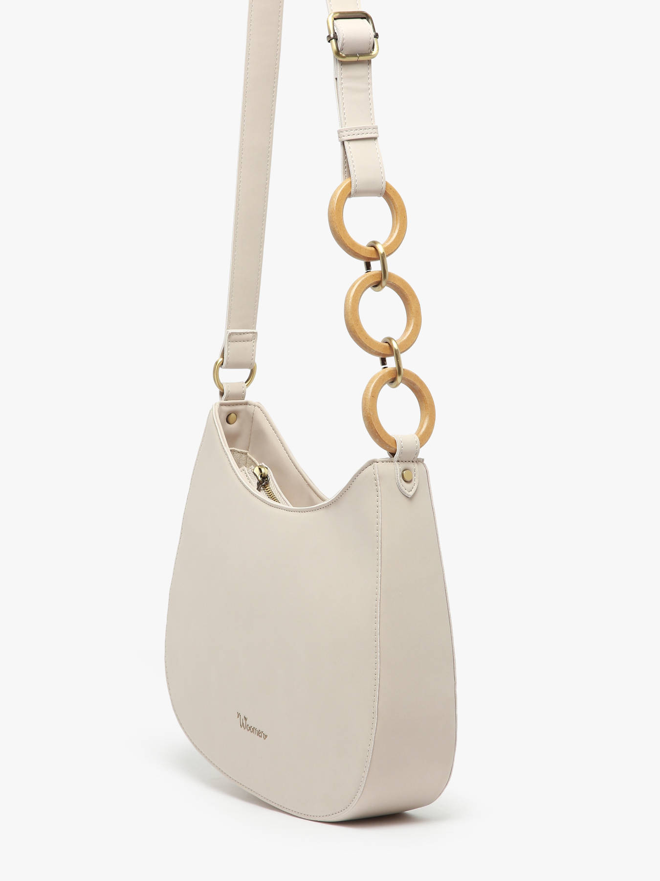 De WOOMEN cross body tyas uit de HELICONIA-lijn is ontworpen in gerecycled polyurethaan, met een voering van katoen en linnen voor extra comfort. Hij wordt gesloten met een rits en heeft een verstelbare schouderriem, versierd met verstrengelde ringen. Binnenin biedt hij een hoofdvak, een eenvoudige zak, een ritszak en een zak aan de achterkant voor praktische opberging. Het elegante ontwerp wordt afgewerkt met een nieuw, modern logo.