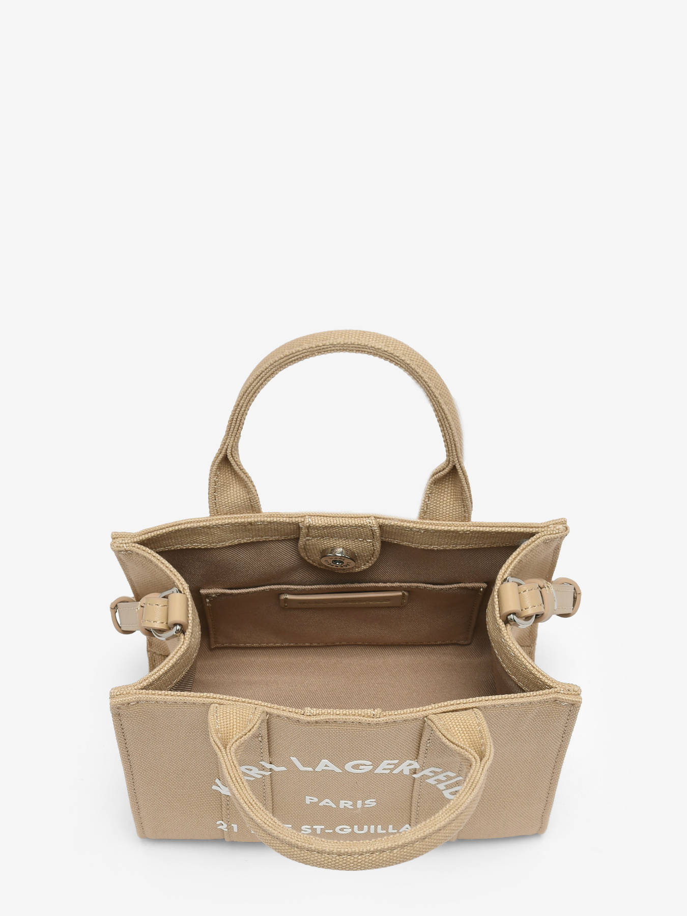 Deze Karl Lagerfeld cross body tas van katoen combineert lichtheid en natuurlijke elegantie met een eigentijds design. De magnetische sluiting zorgt voor een snelle en veilige toegang tot je persoonlijke spullen. Dankzij de verstelbare en afneembare shouderriem kan de tas zowel als cross body tas als in de hand gedragen worden, wat zorgt voor veelzijdigheid bij elke gelegenheid. Binnenin biedt een ruim hoofdvak samen met een eenvoudig steekvak voldoende ruimte om je essentials overzichtelijk op te bergen. Deze tas verenigt comfort, functionaliteit en stijl – perfect om je dagen met verfijning en eenvoud te begeleiden.