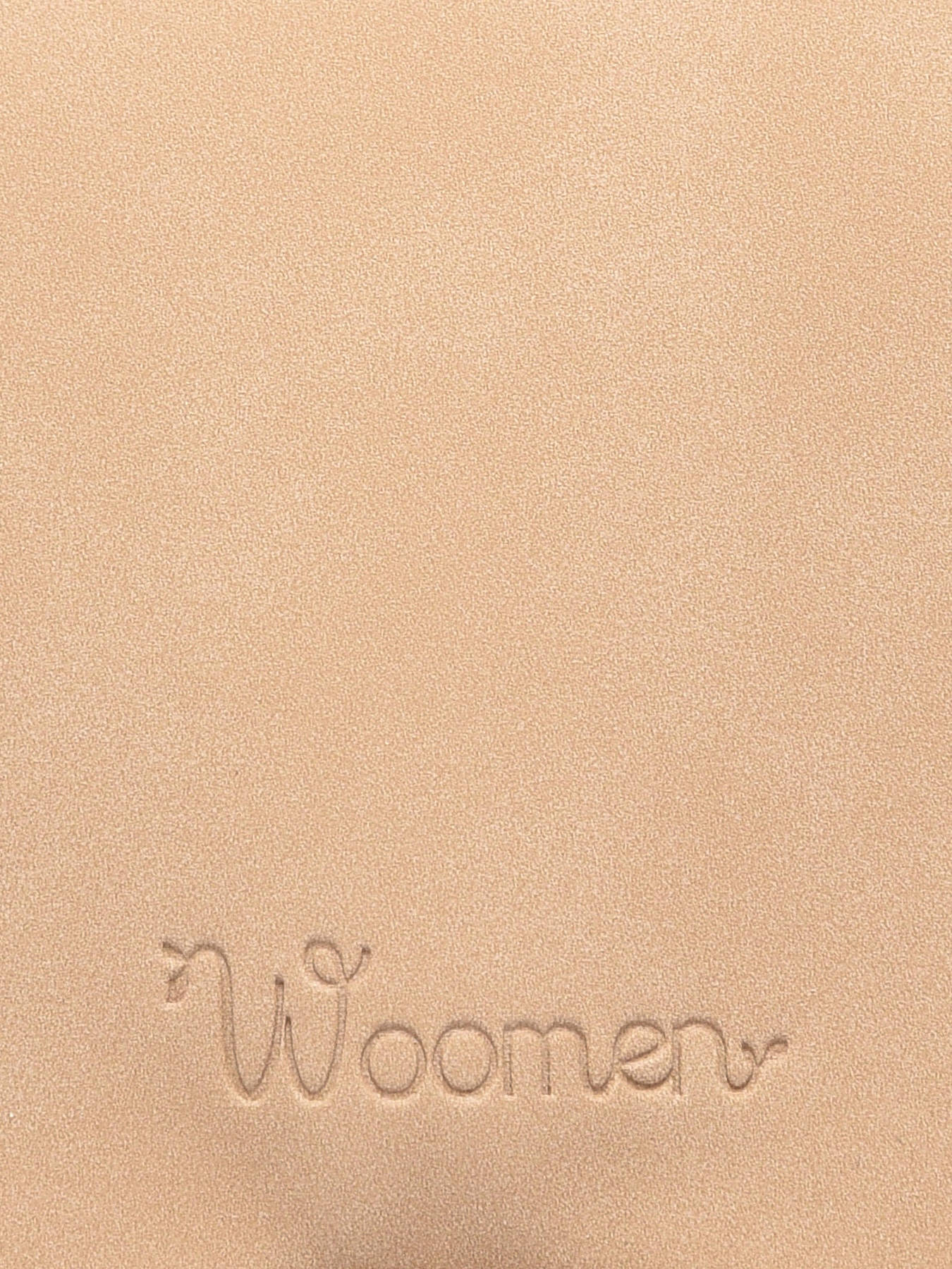 De WOOMEN handtas uit de CROCUS lijn, gemaakt van gerecycleerd polyurethaan met een katoen- en linnen voering, wordt gesloten met een rits. Het kan over de schouder of in de hand gedragen worden en heeft een enkel compartiment, een eenvoudige zak en een ritsvakje. De beige schouderriem met het Woomen-print en de houten ring als handvat voegen een elegante touch toe.