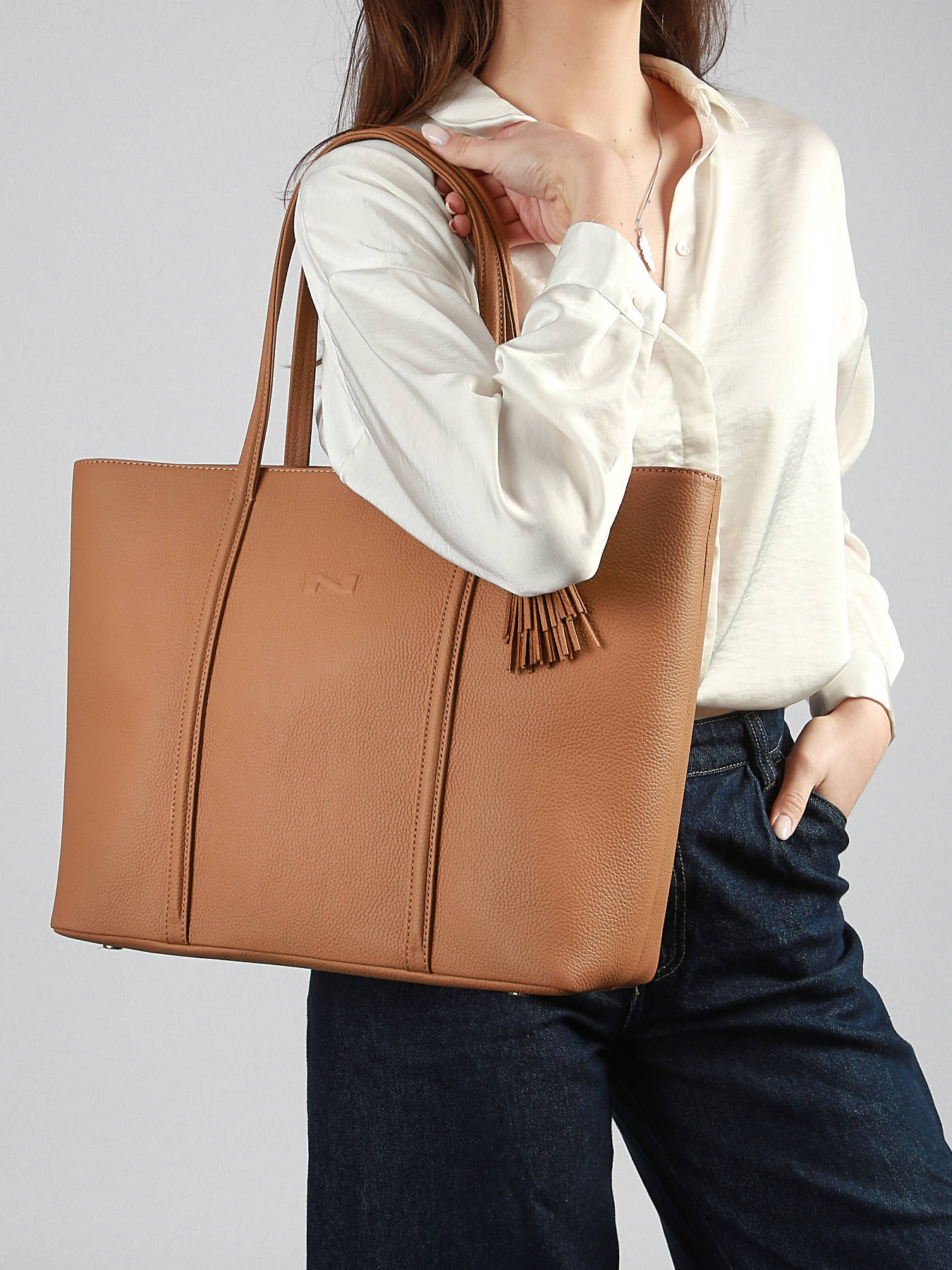 Deze stijlvolle schoudertas uit de Nathan collectie van Nathan Baume kan perfect gebruikt worden voor persoonlijk of professioneel gebruik. Dankzij z'n grote formaat en veilige ritssluiting kunt u er makkelijk documenten van A4-formaat en een laptop in opbergen. Kleine spulletjes kunnen afzonderlijk worden opgeborgen in het middenvak met rits. Deze schoudertas van Nathan Baume is gemaakt van soepel rundsleer met een gekorrelde textuur. De damestas werd afgewerkt met het iconische N-logo van het merk en een speelse pompon. Draag deze shopper in de hand of losjes over de schouder, en neem zo al je essentials overal met je mee!